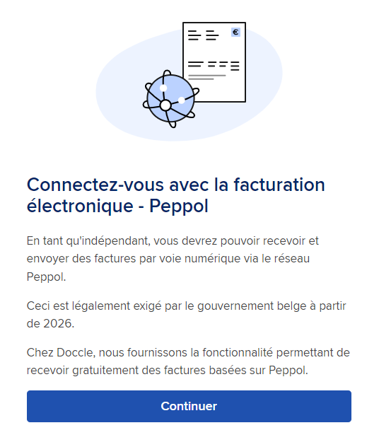 Vous pouvez vous enregistrer pour Peppol depuis la liste d'expéditeurs Doccle dans votre compte Doccle ou en cliquant ici.