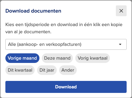 - Selecteer de periode en welke facturen u wilt downloaden en klik op Downloaden